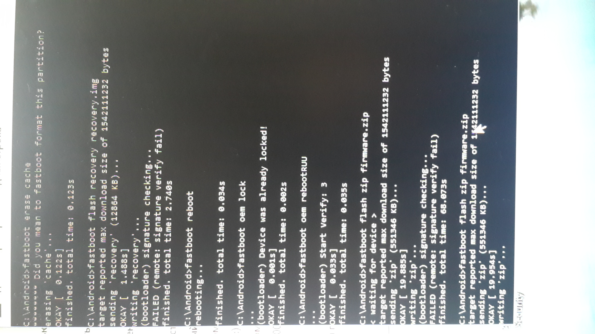 Пробовал- Инструкция по возврату в заводское состояние HTC One M7 номер сборки прошивки 7.19.401.2, не получилось на команду-fastboot flash zip firmware.zip пишет kannot load,