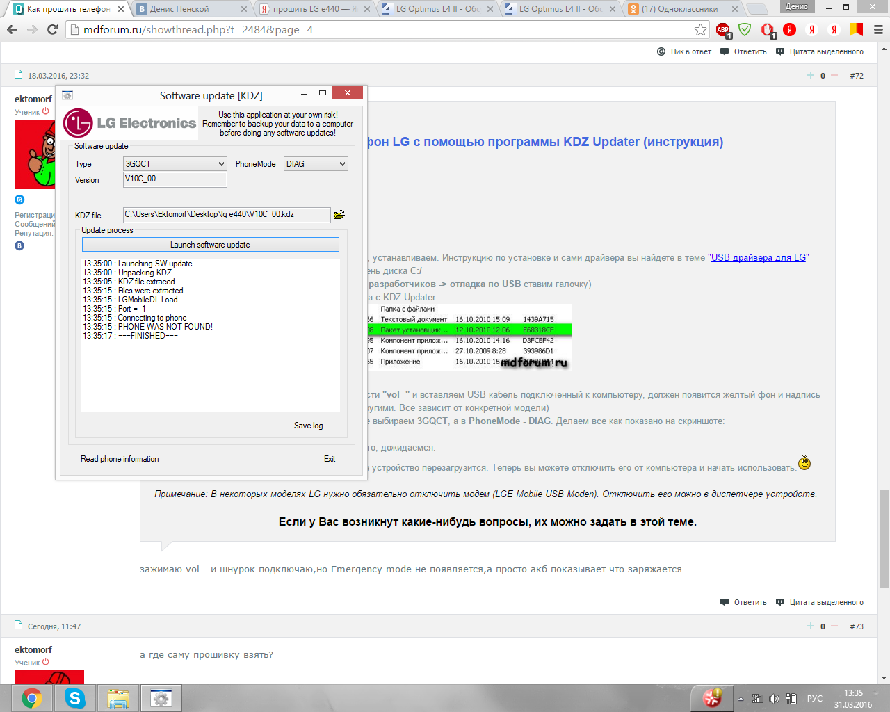 Привет, у меня телефон Lg D380. Сдавал на ремонт из-за того что перестала ловить обе симки, сказали что прошивка полетела, убрали всю прошивку, вообще телефон чист и не включается теперь, даже на зарядку не реагирует, так вот, как мне запустить это все дело и прошить телефон?