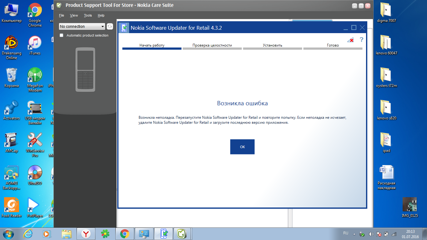 ну вот смотри, какая разница куда ты положил прошивку, если телефон не определяется в программе? не вижу вообще логики, как это между собой связано