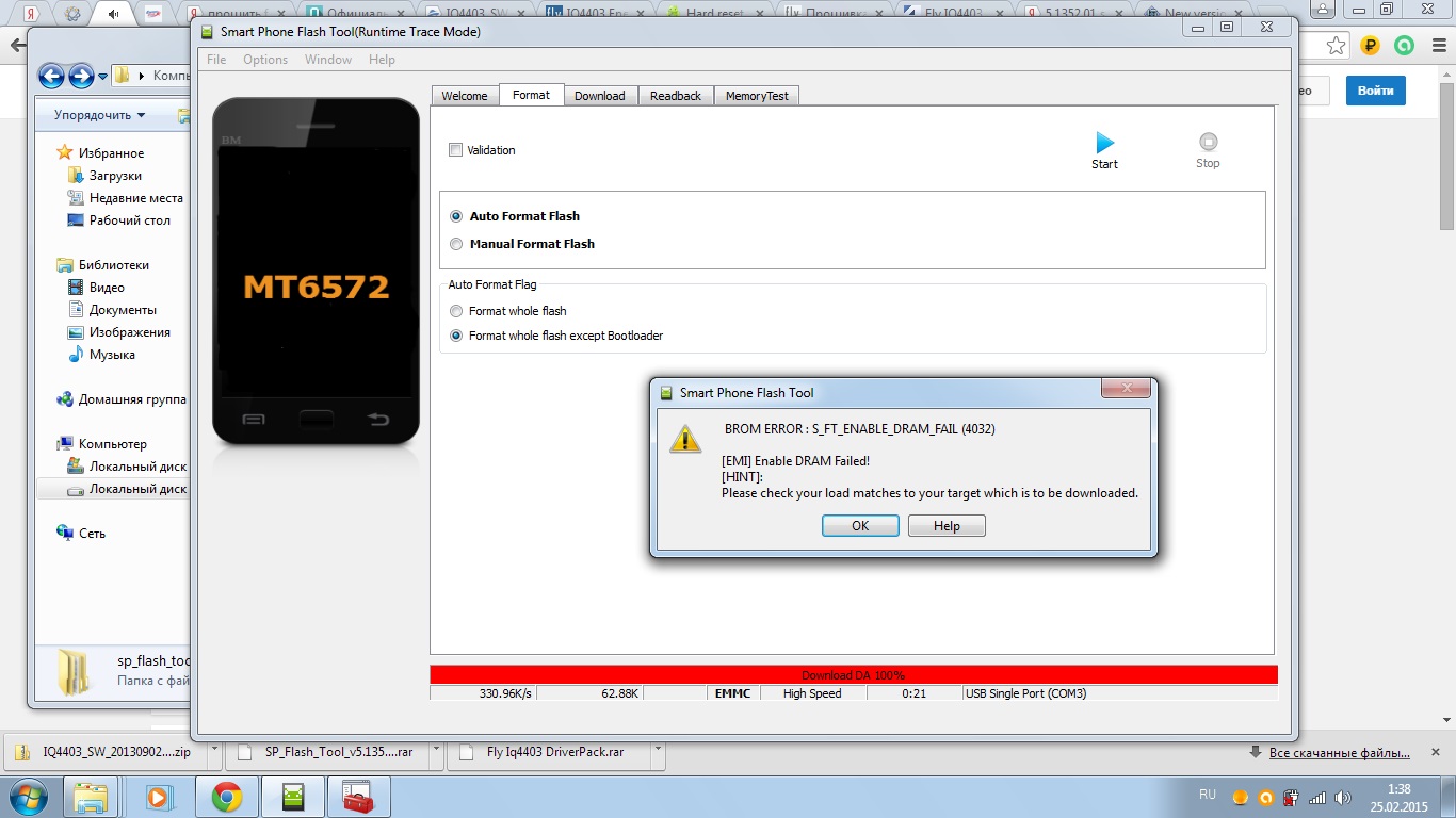 ну и зачем ты выбрал режим прошивки Format + Download???? я об этом где-то писал? версию флэштула тоже можно было бы использовать из первого поста, ссылку я ведь дал