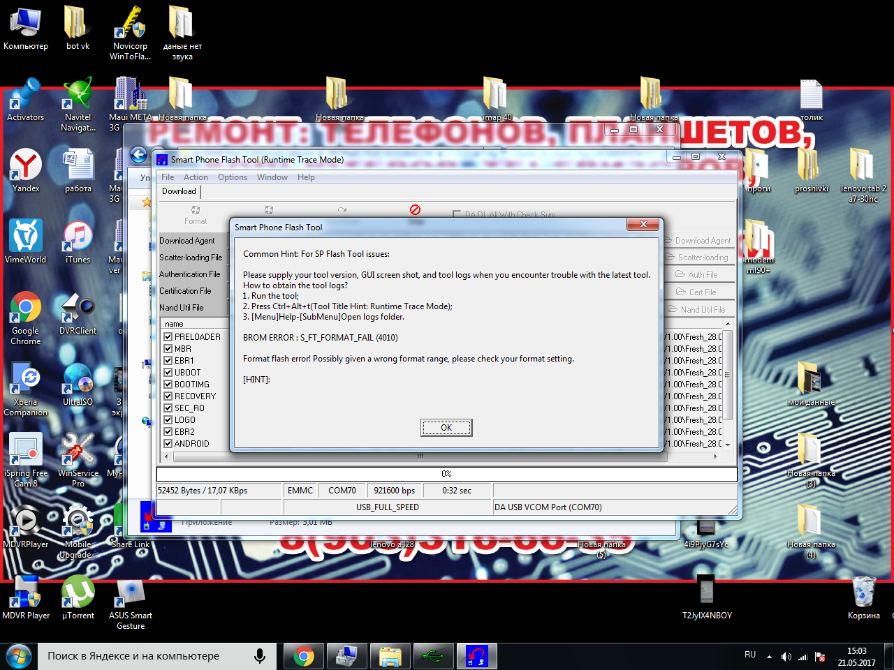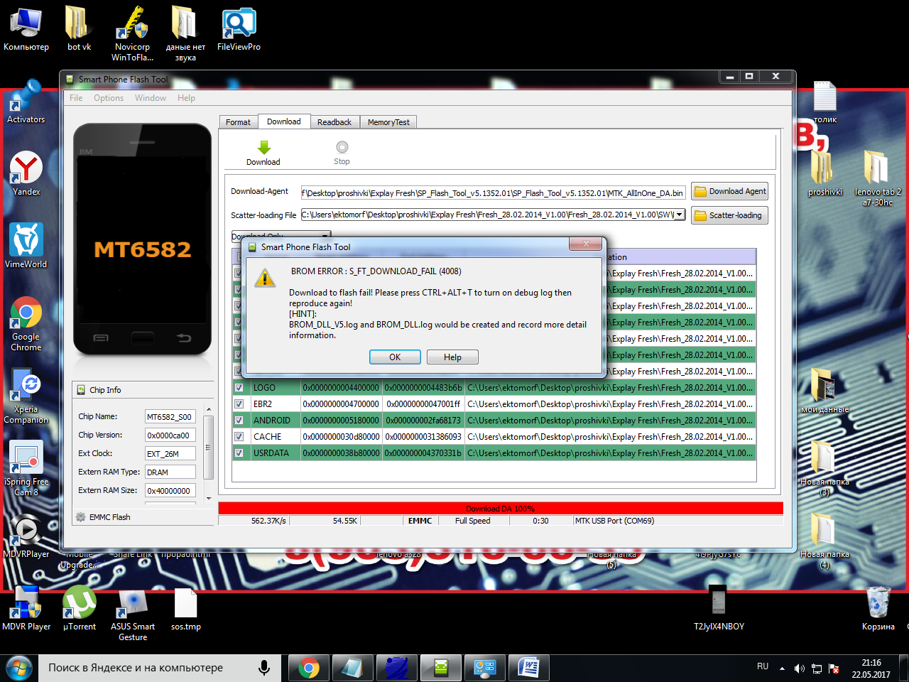 привет, слушай помоги!! хочу прошить EXPLAY FRESH, я это уже 1 раз делал, всё было норм получилось, а сейчас тел опять сдох и я пытаюсь прошить, всё делаю также, но почему то не получается! у меня Виндос 10, я удалил те драйвера на тел через USBView, и установил их заново отключив проверку подлинности. Но всё равно выдаёт какую то ошибку,я прикрепил скрин, помоги пожалуйста разобраться!! Буду благодарен!