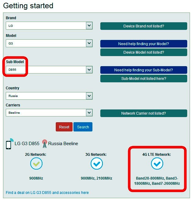 LTE band 2(1900), 4(1700/2100), 7(2600), 17(700) - D851