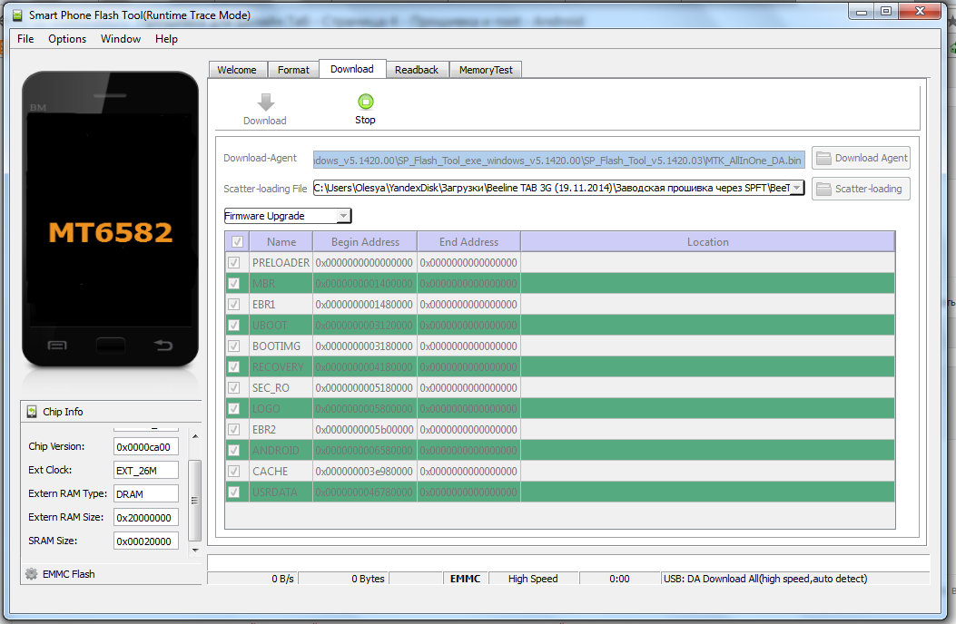 Если после загрузки scatter-файла во Flash Tool и нажатия кнопки Download, программа переходит в режим ожидания планшета, а после того как вы подключаете выключенный планешт к ПК, прошивка не стартует, значит, в 99% случаев, проблема в драйверах. похоже вы их так тупо и не установили.