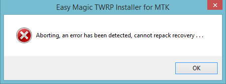 у меня ошибка: Your recovery partition is only 6291456, ported TWRP might be oversize & causes it to loose the IMEI! You have been fore-warned!