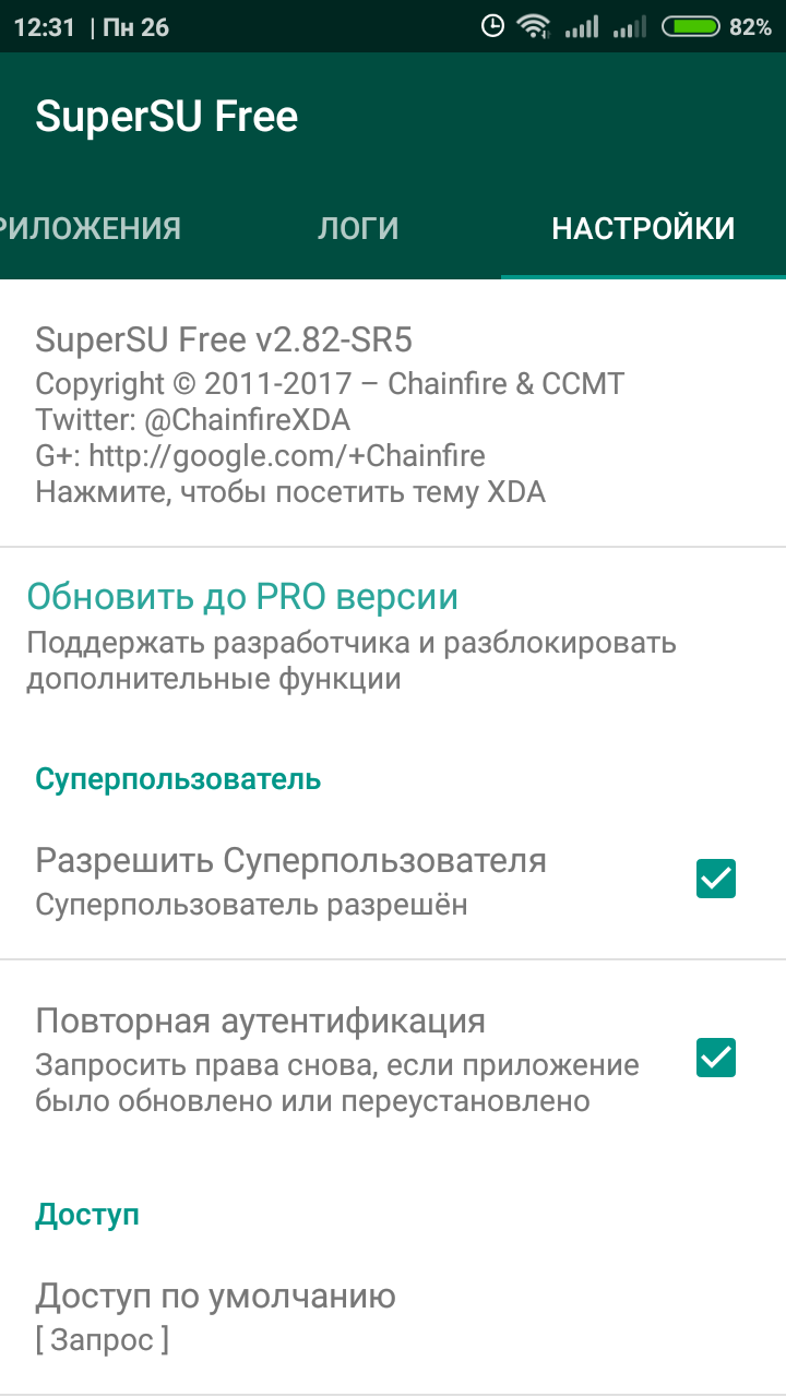Выполнил все указанные действия. Установилась программа SuperSU. В ней стоит галочка Разрешить Суперпользователя. Суперпользователь разрешен.