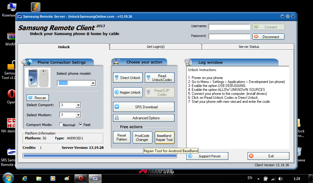 8. Запустите программу Samsung SRS ( Пуск -> Все программы -> Simlock Remote Client -> Samsung Remote Unlock Client )