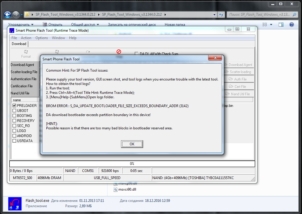 Окирпичился телефон. Была проблема. Телефон зависал на лого загрузки и дальше ни чего. Перепрошил один раз прошивкой с 4pda. телефон прошел лого, но при настройке телефона опять завис и все по старому. Попытался прошить еще раз. В итоге прошивка не встает на место. Использовал разные версии SPFT, и 5ю и 3ю. если форматировать, то удачно, а при попытке залить прошивку лезут ошибки с bootloaderom (3050, 3142 и пр.) При чем как в режиме Download, так и Firmware. Чем ему bootloader не угадил так? Может хоть клоны какие есть? Не поверю, что задрипаная Explay делает эксклюзивных китайцев.