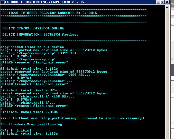 У меня тоже Prestigio 3341 (Android 5.1). Устройство на Intel.Подскажите подробней как удалось ввести в режим fastboot?вводить через cmd до запуска файла launcher.bat(п.5)?весь процесс идёт нормально,после ввода Т3,планшет перезагружается.То есть хочу знать на каком этапе вы советовали, предыдущему пользователю Skorika,выполнить соответсвующую команду.