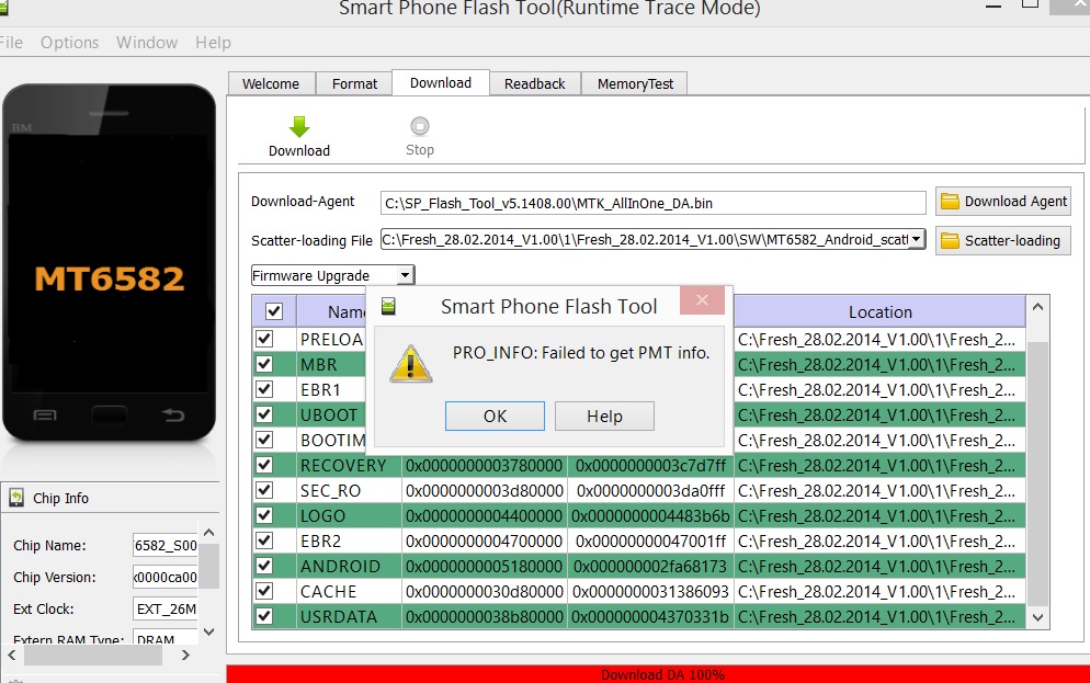 2. попробуй залить целиком прошивку вместе с preloader (путь к файлу должен быть указан обязательно!) в режиме firmware-upgrade