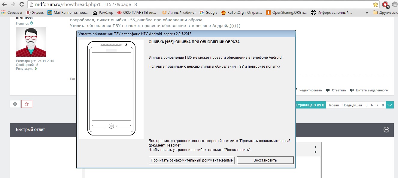 попробовал, пишет ошибка 155_ошибка при обновлении образа
