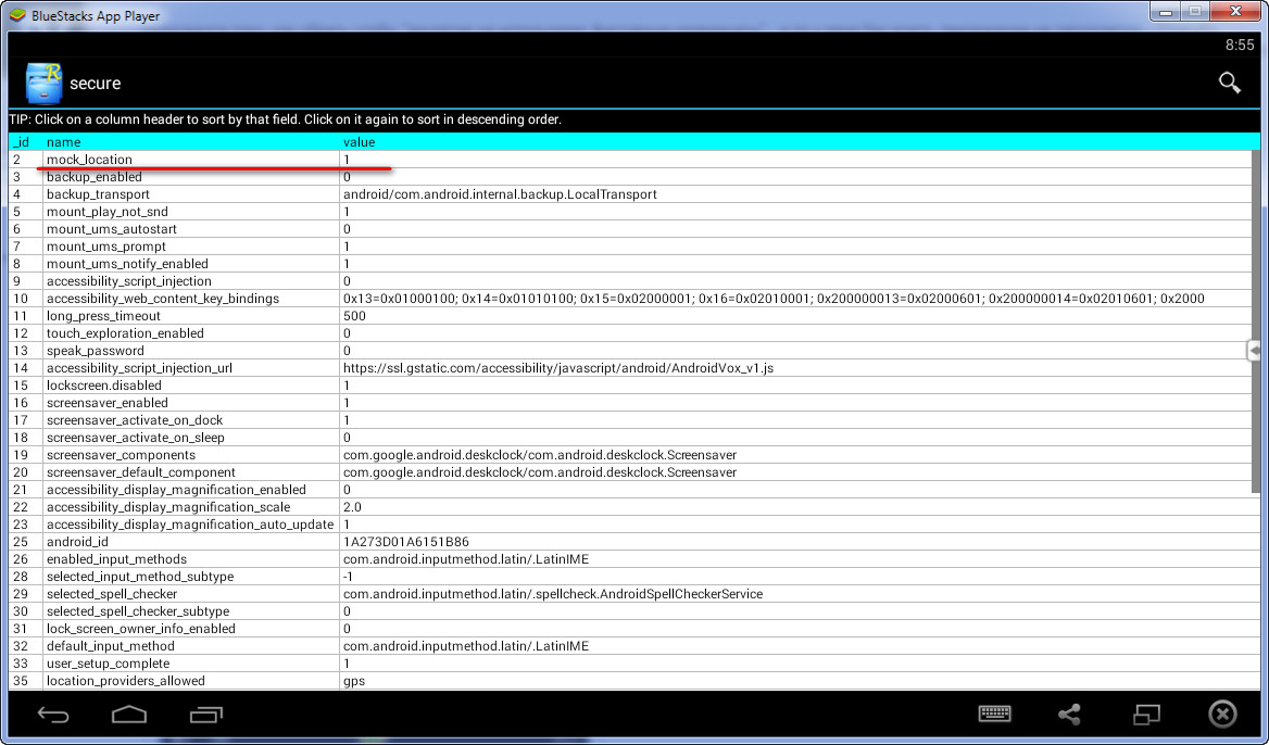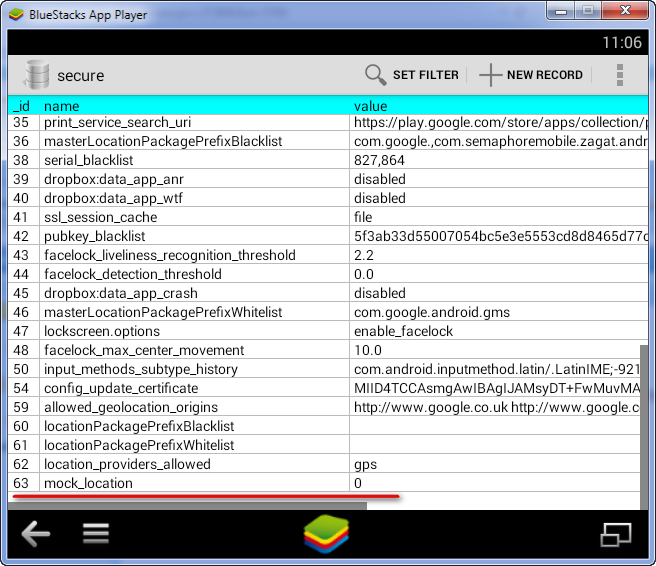 3. Открываешь в Root Explorer /data/data/com.android.providers.settings/databases/settings.db таблица secure, mock_location.