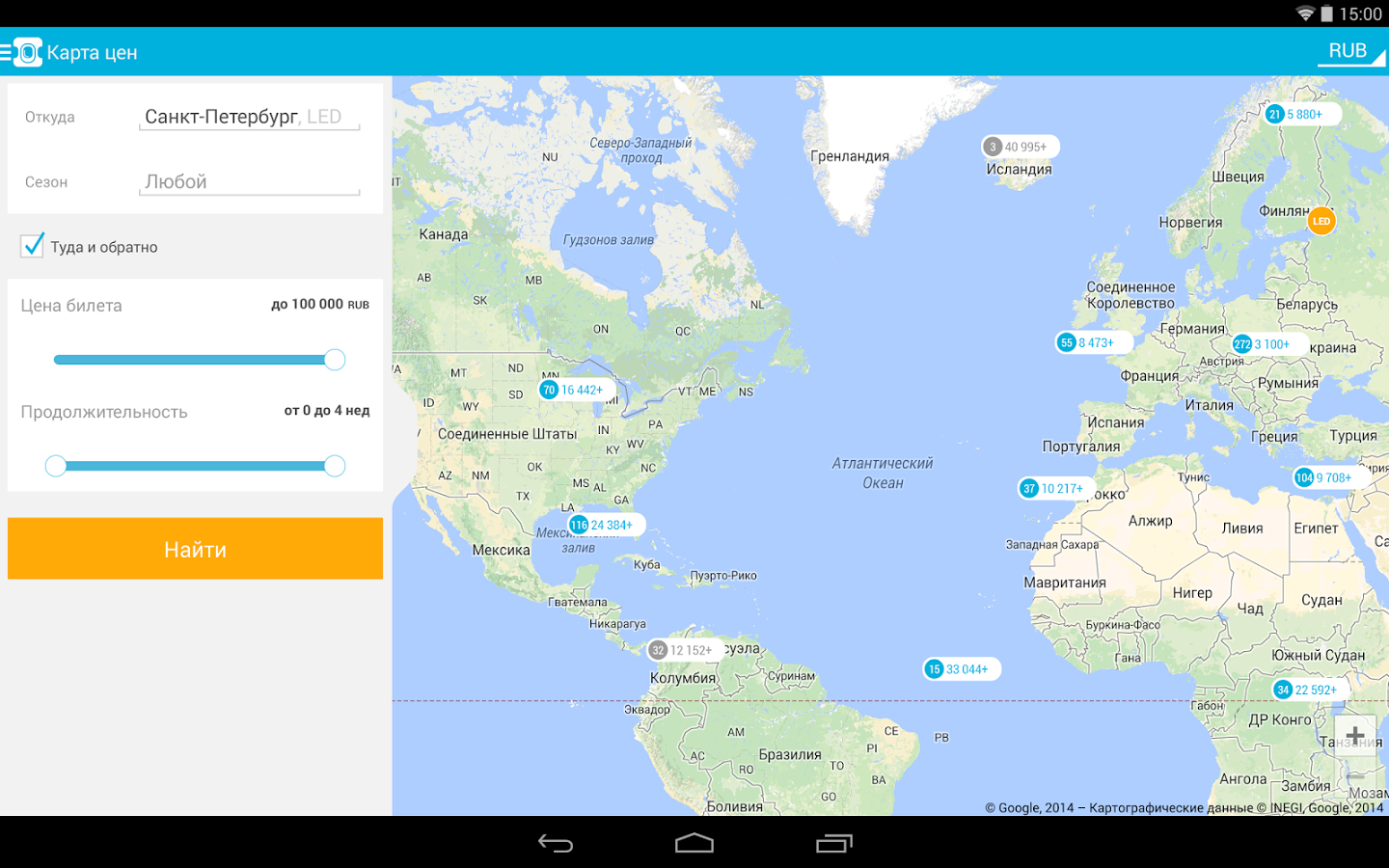 — в приложении есть карта цен на случай, если вы ещё не решили, куда хотите отправиться в путешествие