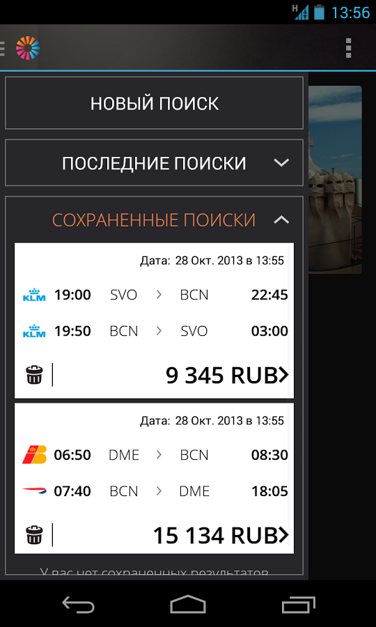 • Сохранить результаты поиска в приложении и продолжить позднее