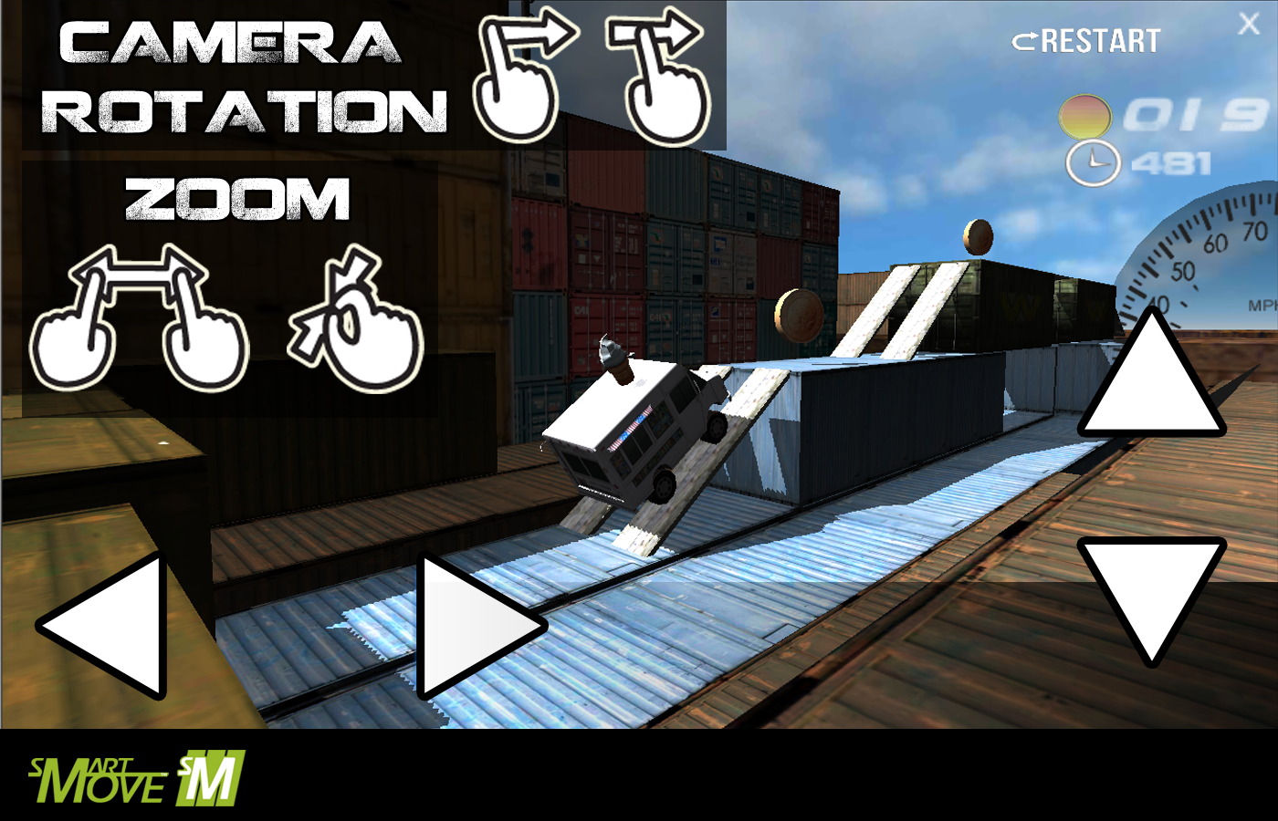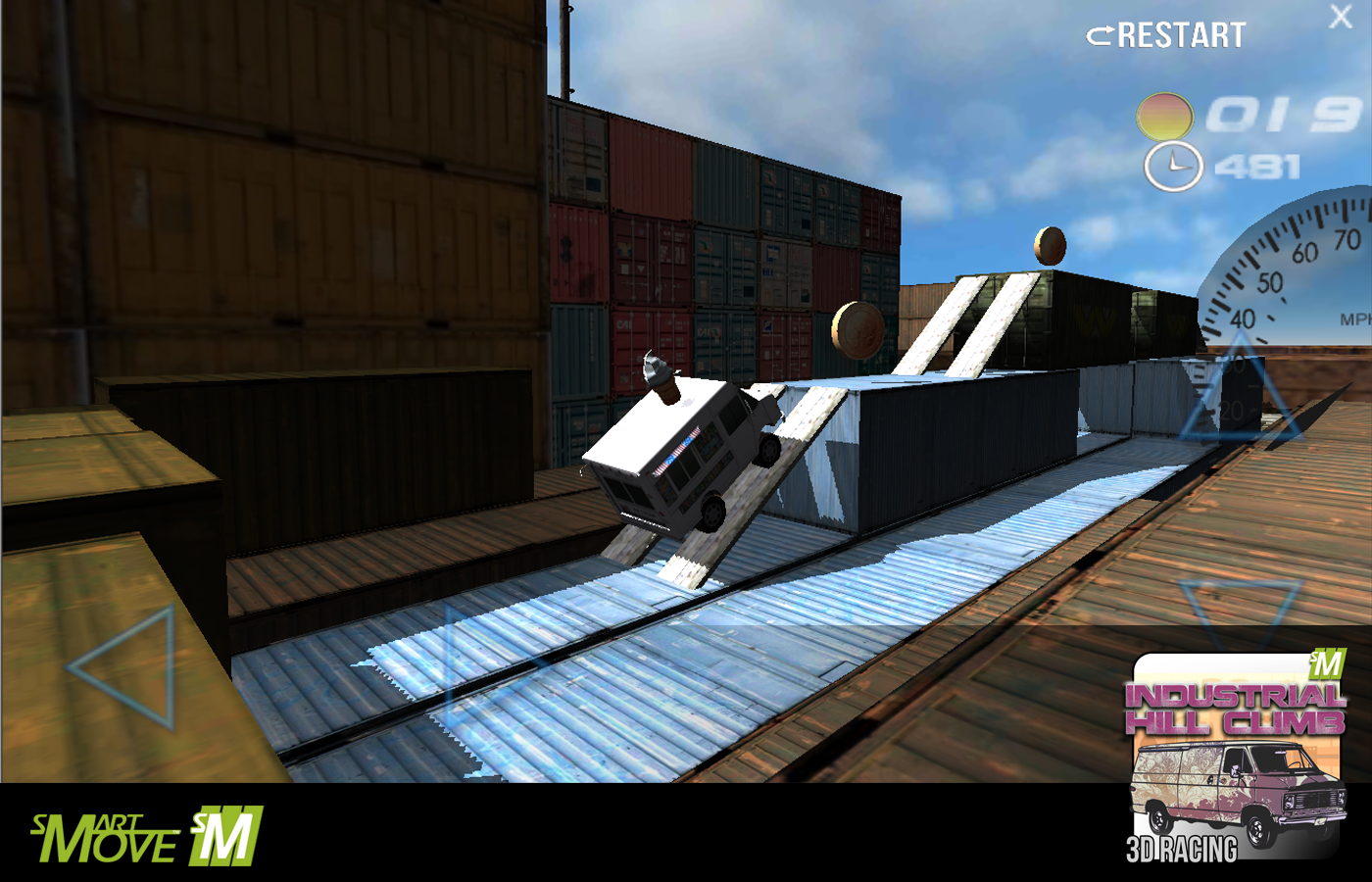 Вам придется прокладывать свой путь через множество контейнеров, коробок, деревянных брусков, и специальных платформ для прыжков. Стань чемпионом ИНДУСТРИАЛЬНОГО Hill Climb Racing 3D!