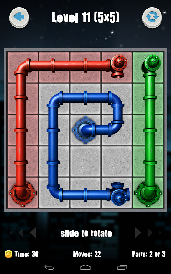 Ты не учился на водопроводчика? Не беда! В новой головоломке у тебя есть все шансы превзойти неудачливого сантехника Боба. Соединяй гидранты одинакового цвета и проложи трубы через все ячейки двусторонней доски, чтобы решить головоломку и починить трубопровод! Открой для себя оригинальные игровые локации, в каждой из которых больше 50 уровней различной сложности. Решай увлекательные логические задачи, собирай максимальное количество звёзд за мастерство и получай награды за скоростное прохождение уровня.