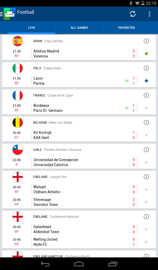 - онлайн комментарии на английском языке для самых популярных европейских футбольных лиг