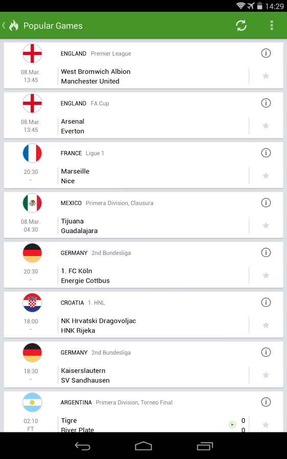 - настраиваемые уведомления (начало матча, перерыв между таймами, конец матча, голы, тачдауны, красные карточки – гейм, сет, матч в теннисе)