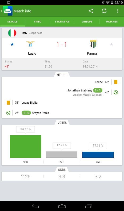 - голосование за победителя матча, а также возможность видеть, что предполагают другие болельщики