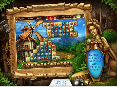 Величественная столица всех времен и народов приглашает тебя стать ее императором! Окунись в атмосферу древнего Рима, пройди 100 захватывающих уровней, меняя местами фишки и составляя три и более в ряд, используй бонусы, чтобы ускорить игровой процесс, и освой 5 исторических эпох. Играй и наблюдай, как твоя деревенька превращается в центр жизни, сердце Античности. Тебе предстоит восстановить шедевры римской архитектуры: от Колизея, где можно тренировать гладиаторов до, Пантеона, места поклонения грозным языческим богам.