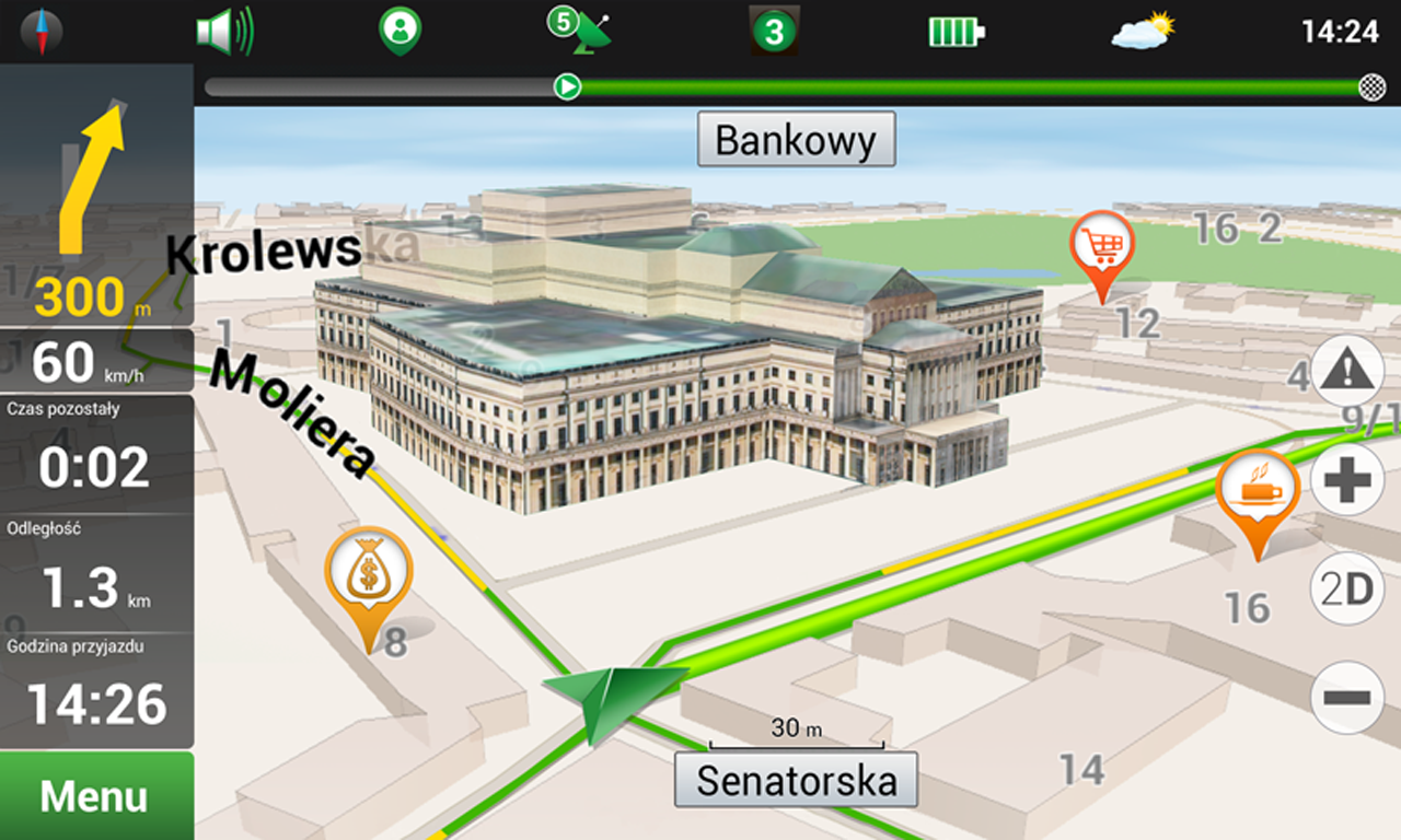 - Трехмерное отображение зданий и дорожных развязок.