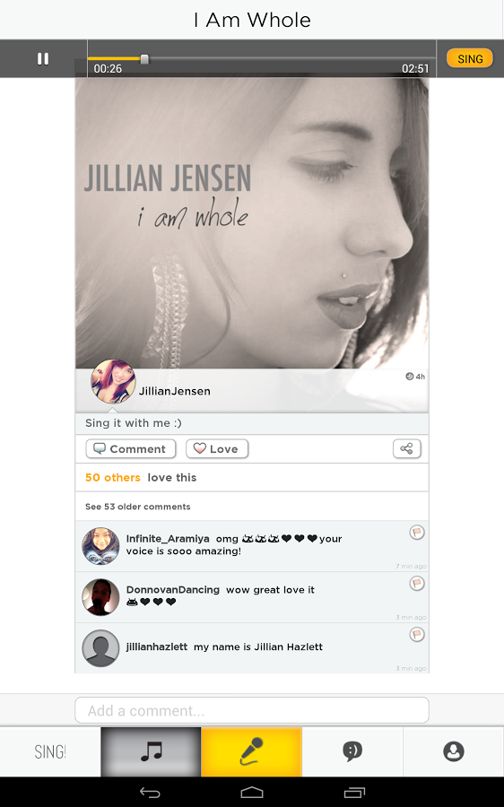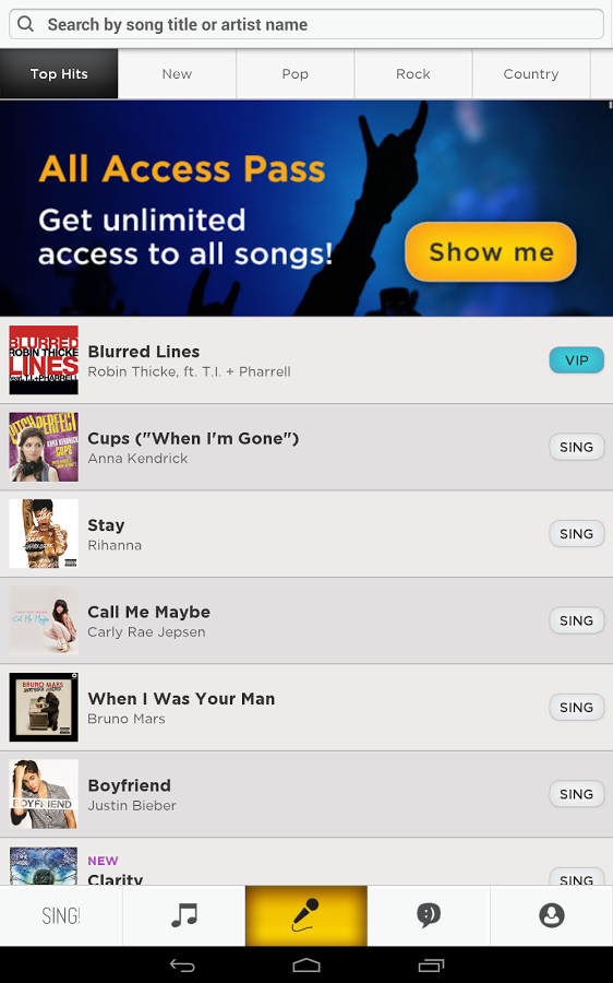 Sing! - караоке для Андроид от разработчика Smule. Установите приложение и исполняйте ваши любимые песни, выбирая композиции из огромного списка!