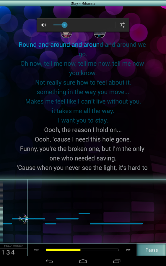 - Прокручивающийся текст, линии высоты голоса и вокала на заднем фоне помогут спеть песни;