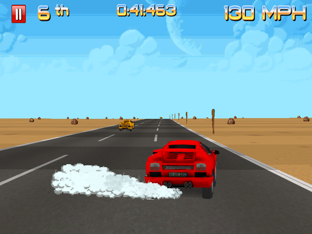 Ретро гонки, которые пришли к нам с игрового автомата 1991 года выпуска. Прокатитесь по трассе со скоростью 150 миль в час на спортивном супер каре. И не забывайте уворачиваться от встречающихся машин, и обходить крутые повороты. Выиграй всех противников в различных точках земного шара, от зеленых лугов до солнечных пустынь.