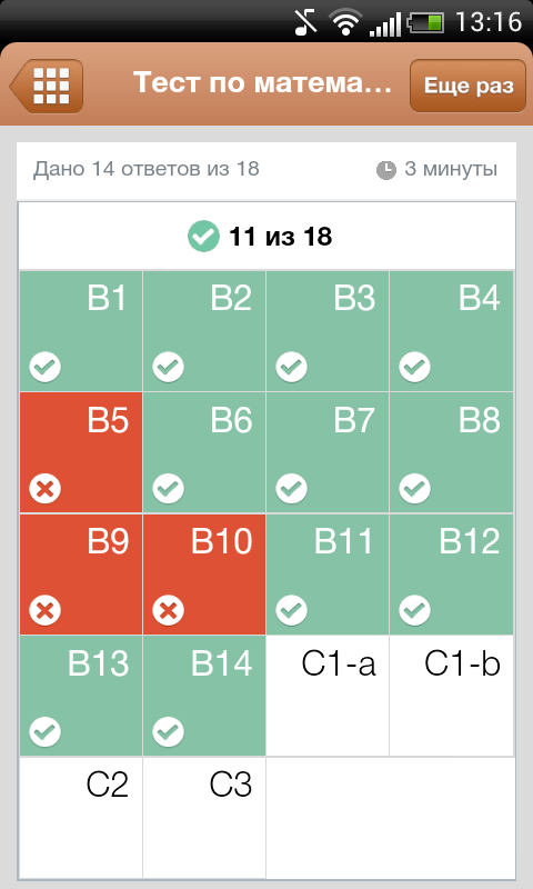 - режим тренировки: возможность практиковать только определенные типы вопросов;