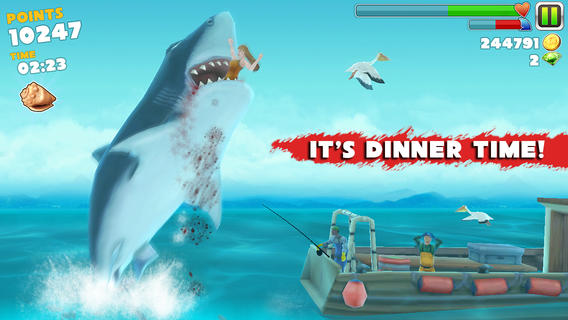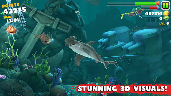 Hungry Shark Evolution - аркадная игра, в которой вам предстоит пройти путь от обычной рифовой акулы до большой акулы, с опытом и способностями. Разблокируйте самых свирепых зверей в море: тигровая акула, акула молот, большая белая акула. В игре отличная графика, которая придется по вкусу даже самым искушенным геймерам.