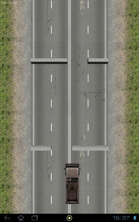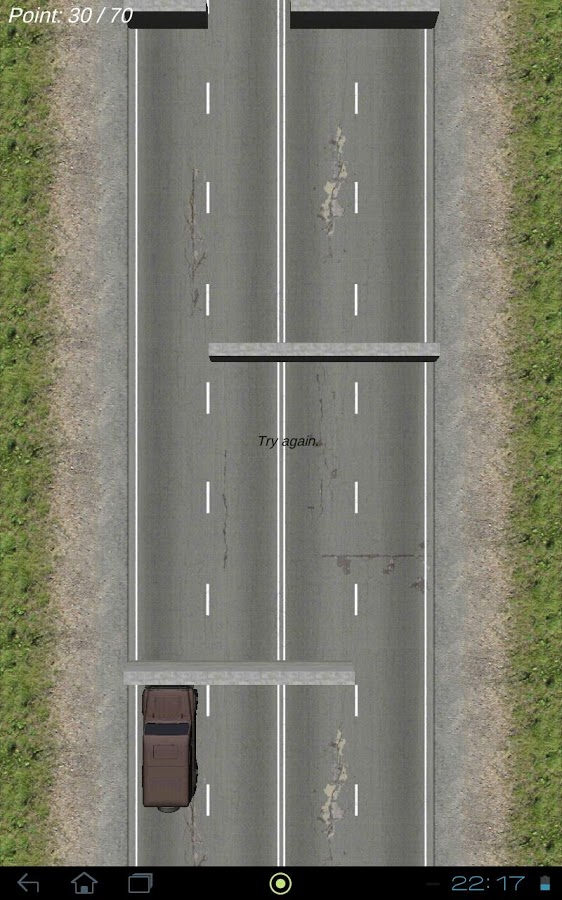 Красивый платформер, если вы помните гонки на тетрисе, то эта игра вам понравится. Игра заключается в том что бы гнать на машине и не врезаться в заборы либо в машины. Управление осуществляется акселерометром, что создает удобство для игры. Проходя препятствия вы зарабатываете очки, что придает азарт игре. В дальнейшем планируется внедрить улучшенную графику и разнообразность трасс.