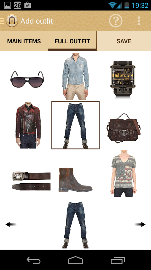 - «Комплекты» – составляй новые наряды, редактируй уже существующие, просматривай их в полный экран
