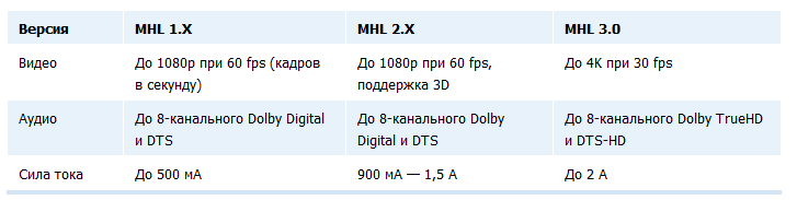 Версия MHL 1.X MHL 2.X MHL 3.0