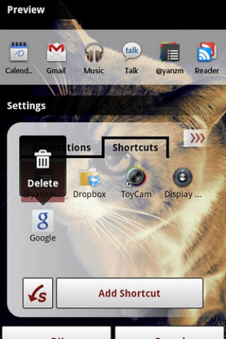 Чтобы использовать ярлыки в данной оболочке нужно приобрести «Shortcut Import Feature», любой шрифт - «Font Import Feature» при этом необходимо поместить необходимые файлы шрифтов в папку приложения на SD