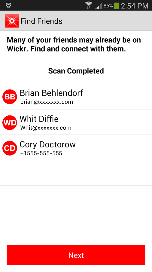 Wickr - защищённый мессенджер, основе которого лежит идея быстрого удаления сообщений. Как отмечают авторы сервиса, с помощью Wickr владельцы мобильных устройств, работающих под управлением iOS и Android, смогут обмениваться текстовыми сообщениями, передавать аудио, видео или картинки, а также отправлять PDF-документы. Все сообщения не содержат никаких дополнительных данных (например, геолокационных меток) и не хранятся на серверах. Кроме этого, они шифруются с использованием алгоритмов AES256, ECDH521, RSA4096TLD.