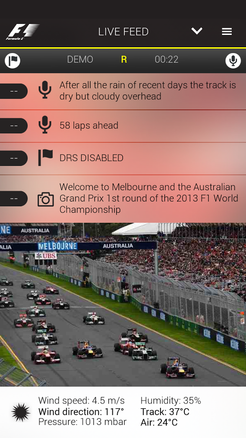 Official F1 ® App - официальное приложение для фанатов Формула-1. Видео, аудио и текстовые трансляции, информация о гонщике/команде и многое другое.