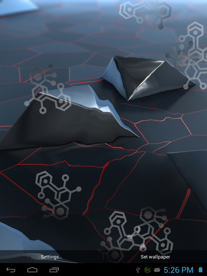 Живые, легко настраиваемым, обои, превратят ваше Android устройство в биологическую машину. Вы можете установить скорость, размер и количество молекул, установить частоту кадров вашего экрана, управлять звуком и сенсорными эффектами.