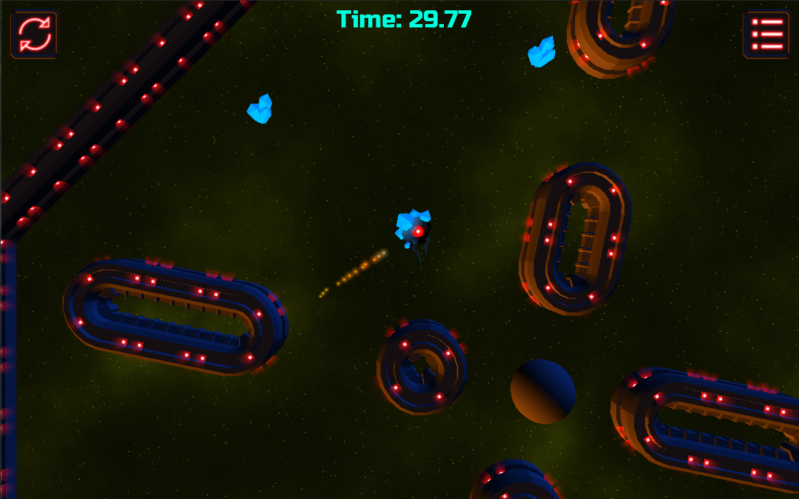 Будь первым в гонке за кристаллами! Только стремительная ловкость поможет пройти через суровые условия изменчивой гравитации враждебного космоса!