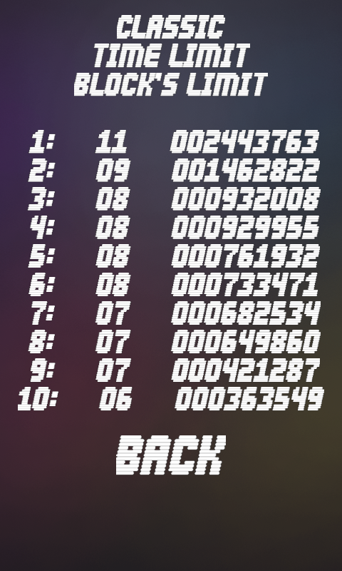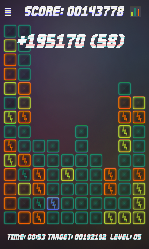 Нажмите на два или более блока для их уничтожения. Ваша задача собирать как можно больше блоков для их одновременного уничтожения, потому что чем больше блоков вы уничтожите за один тап, тем больше получите очков и бонусов!