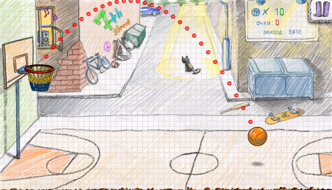 Играйте в Баскетбол прямо на листе бумаги, почувствуйте оригинальность и незабываемую атмосферу! Ваша цель — набрать максимальное количество очков, используя ограниченное количество мячей. Делайте чистые попадания и зарабатывайте дополнительные мячи. Чем больше попаданий, тем больше различных бонусов! Набирайте очки и открывайте новые мячи!
