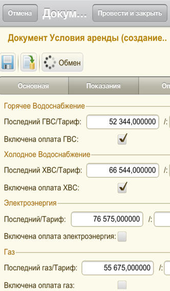 Арендатор будет всегда иметь последние данные по условиям аренды и последние введенные показания.