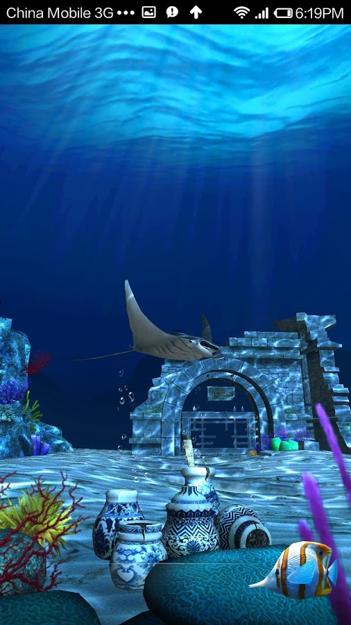 Подводные живые обои на Android, погружают нас на самое дно океана, где не ступала нога человека... Там хозяйничают только рыбы и акулы, а ещё лежат сундуки с золотом и останки давно затонувший цивилизации, наверное Атлантида как обычно. Спокойная и размеренная подводная жизнь.. Большие черепахи тоже периодически проплывают в вышине, но все мгновенно разбегаются, когда на полянку выплывает зубастый хищник - Акула! В настройках присутствует автоскролл, выбор рыбок, интервал для показа акул и черепах, а так же регулировка остальных объектов на экране - сундука с золотом и горшков.