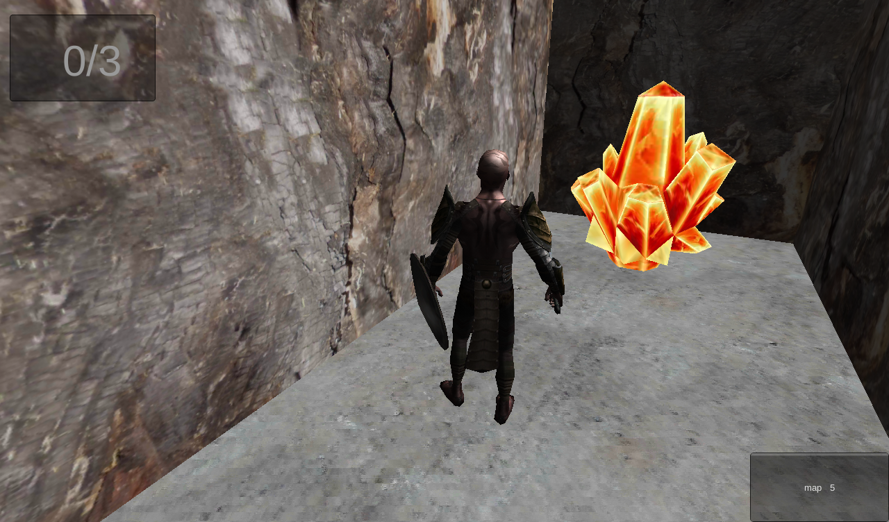 Цель игры собрать кристаллы,которые случайным образом разбросаны по лабиринту. С каждым уровнем лабиринт увеличивается. Вызов карты ограничен.