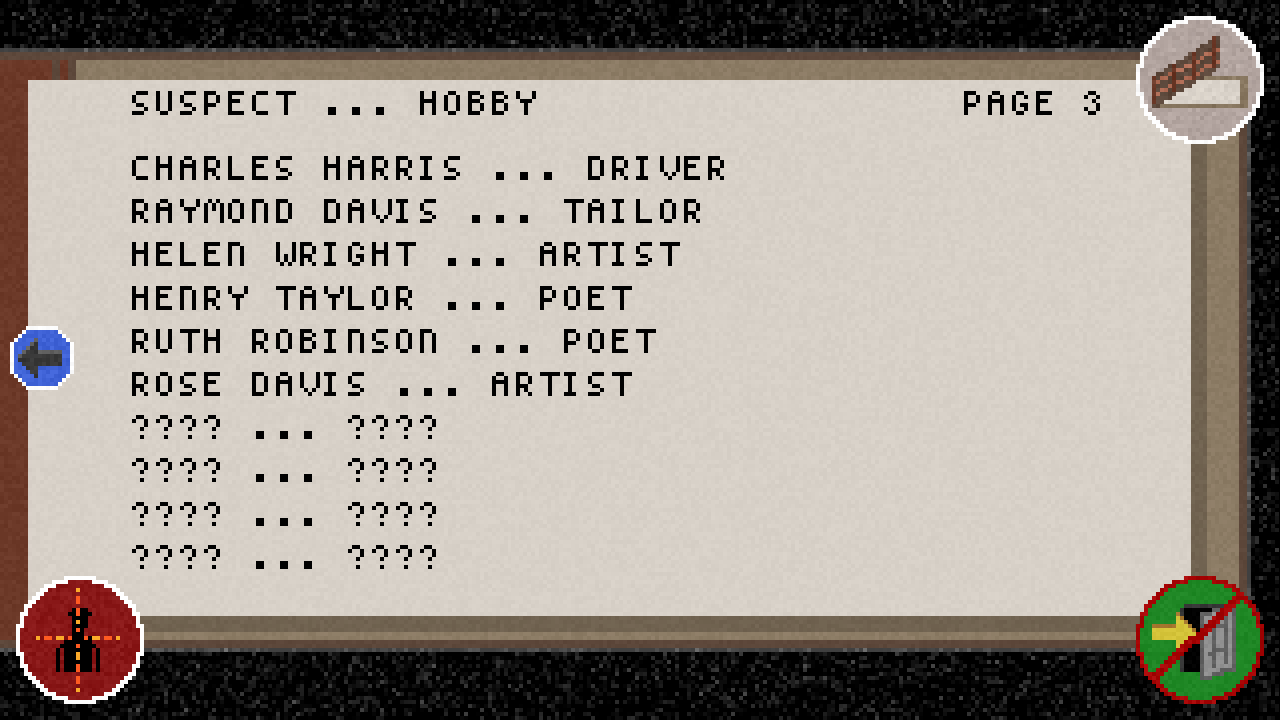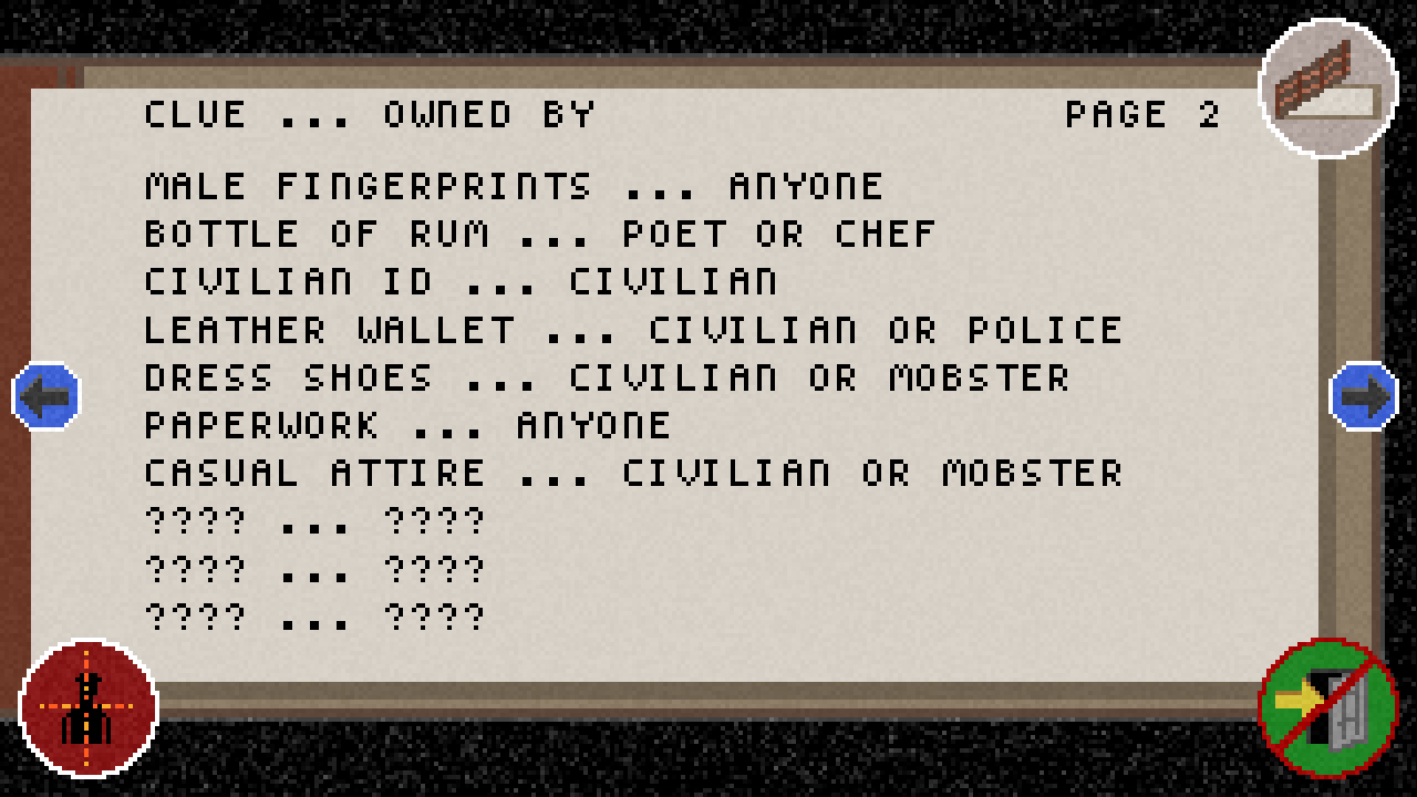 Перед вашими глазами пройдет не один десяток увлекательных историй, рассказанных путем диалогов и забавных пикселизированных анимаций. Все действие сопровождается прикольным и увлекательным саундтреком. Вам нужно будет посещать одну локацию за другой, искать улики и подозреваемых, а затем, используя весь пласт собранных сведений, решить дело — постаравшись успеть до того, как киллер (или иной преступник) сможет “смотаться”. Причем всегда есть и самый печальный вариант, при котором погибает сам детектив! Отличительной особенностью проекта является непохожесть одного прохождения на другое, масса вариантов развития событий и реальная альтернатива выбора! Выбор вам придется делать постоянно: каждый НПС предлагает собственный диалог. Каждый персонаж, с которым вы встречаетесь, может оказаться тем самым “подозреваемым”.
