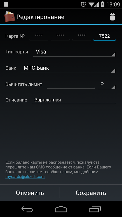 Мои Карты - балансы всех Ваших кредитных карт в одном месте в удобном виде.