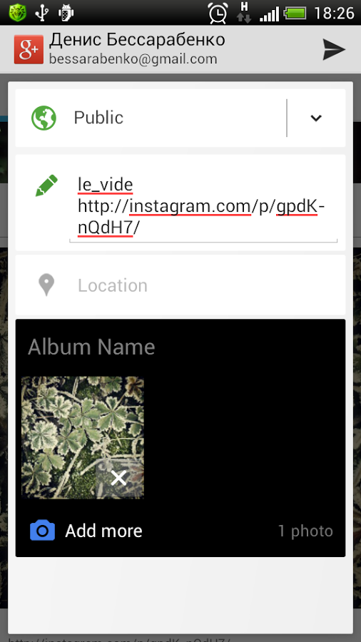 Приложение, которое позволяет поделиться своими фотографиями из Instagram в Google+.