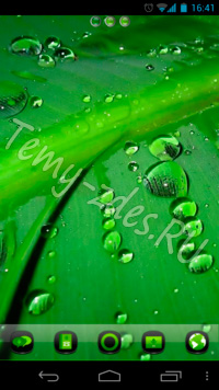 Тема на тематику природа сделанная для Android смартфонов, в которой капли дождя или росы стекают с листа.