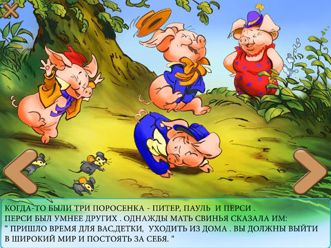 История , которую уже полюбили миллионы детей вернулась , и теперь стала более интерактивной, чем когда-либо в мире трех поросят ! Присоединяйтесь к нашим поросятам в популярной сказке , которая будет развлекать вас и детей , читать им и помогать им развивать навыки чтения !