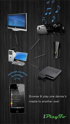 iPlayTo может просматривать медиа и с других DLNA устройств и проигрывать найденное на iPhone или на еще одном DLNA устройстве.