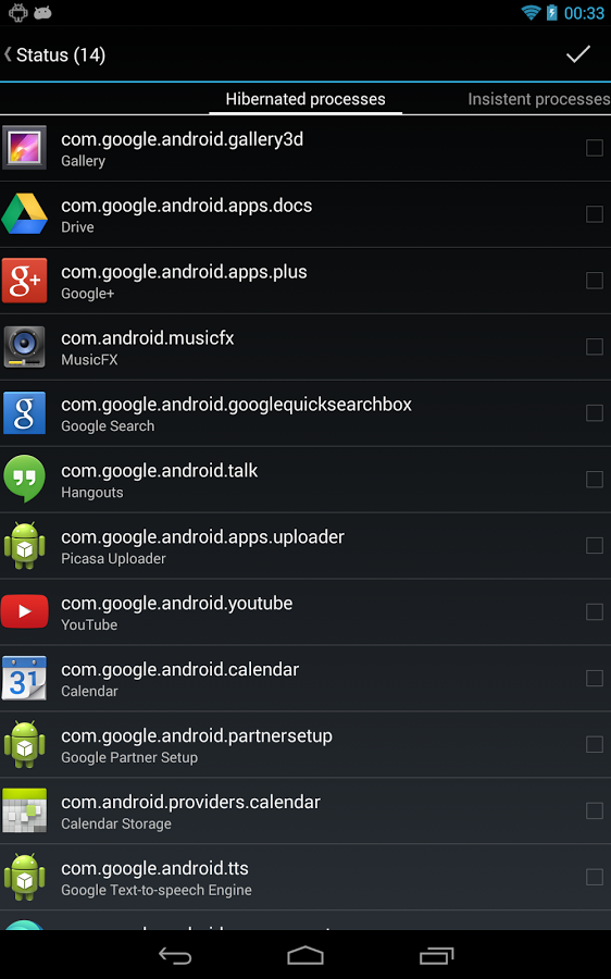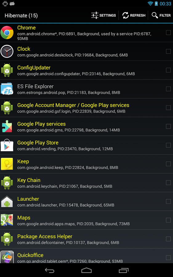 Hibernate - это небольшая утилита для перевода фоновых процессов в состояние сна. Она завершает процессы с помощью системного вызова "killBackgroundProcesses", используемого самой операционной системой при необходимости освободить ресурсы. Этот метод отличается от остановки программ из системного списка выполняющихся программ тем, что он сохраняет состояние приложения, что позволяет пользователю затем вернуться в такую программу с восстановлением её последнего состояния.