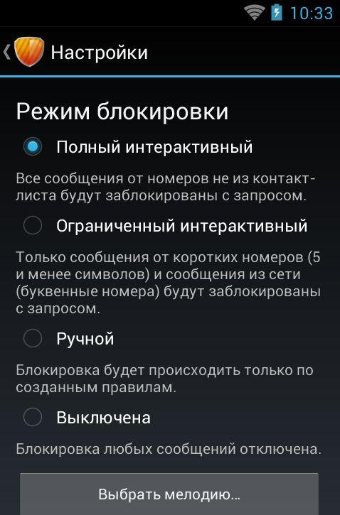 - Умеет блокировать сообщения от буквенных номеров и шлюзов электронной почты.
